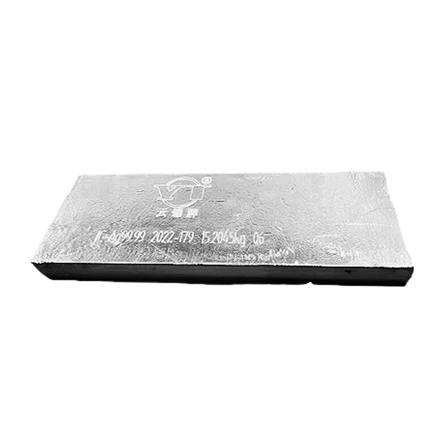 產品簡介:鑄造性能好,可以壓鑄形狀復雜,主要用于制造玩具、餐具、鎖具、五金裝飾件、電氣與電子鑄件、浴室配件、汽車零配件、拉鏈、金屬扣、表殼、風扇、生活用品、家用電器、照相器材、音響、機電產品及零件等。執行標準:GB/T 8738-2014品種規格:ZnAl4、ZnAl3.7觀呈長方梯形,規格尺寸為450*100*50mm左右,錠重9~10kg,每捆100錠,采用塑鋼帶捆扎,凈重約為900~1000kg。年產量:5萬