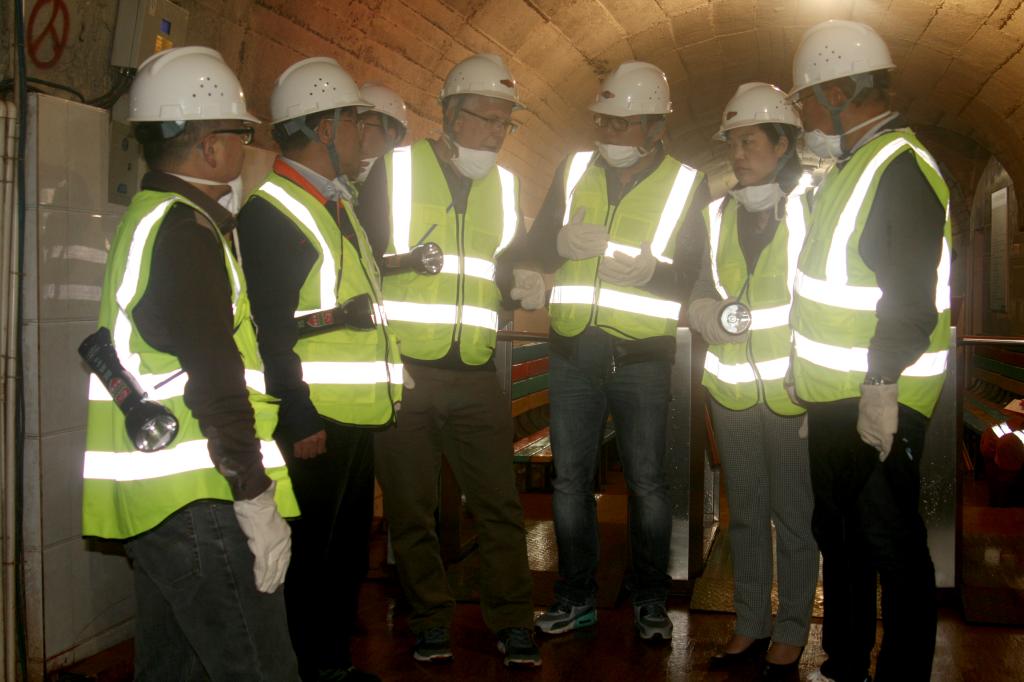 下午,在楊奕敏等領(lǐng)導(dǎo)的陪同下,大衛(wèi)·畢肖普先生一行到大屯錫礦1360工業(yè)區(qū)參觀考察,通過觀看企業(yè)宣傳片對大屯錫礦有了初步了解;隨后,乘坐電瓶車深入千米地層下的三號輔助盲豎井進(jìn)行實(shí)地參觀考察,了解云錫目前的礦山裝備水平和生產(chǎn)狀況。