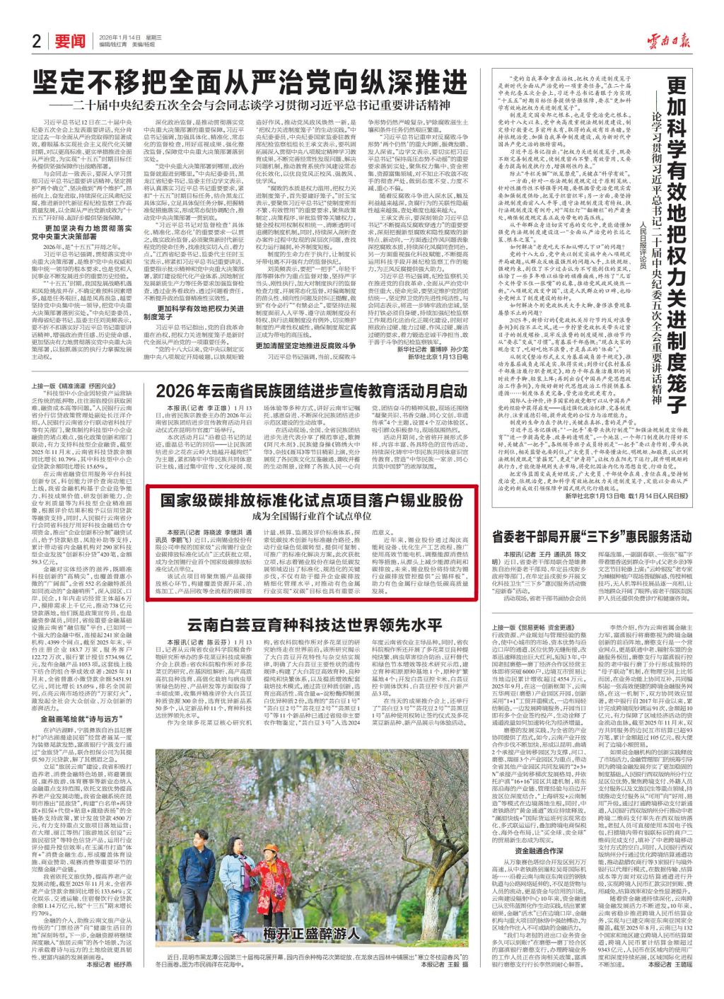 云南日報:國家級碳排放標準化試點項目落戶錫業股份