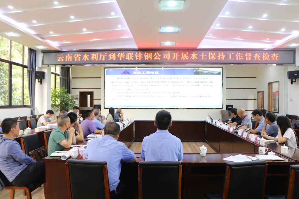 近日,云南省水利廳水土保持生態(tài)環(huán)境監(jiān)測總站正處級干部李叔東率檢查組到華聯(lián)鋅銦公司開展水土保持工作督導(dǎo)檢查。華聯(lián)鋅銦公司黨委副書記、副董事長、總經(jīng)理趙云魁介紹相關(guān)工作情況。